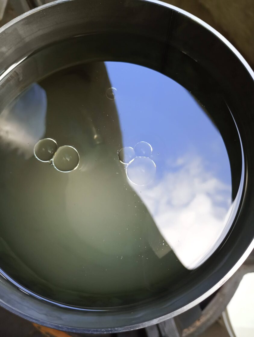 Ekologiczny olejek rozmarynowy wpływa do destylatora.