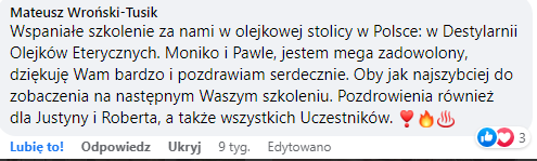 Sprawdź opinie uczestników naszych warsztatów destylacji. Dowiedz się, dlaczego pasjonaci naturalnych olejków wybierają naszą prowansalską szkołę w Polsce.